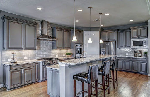 Gray Granite Kitchen Countertops. By Gallery Kitchens and Baths. This stone is an excellent choice for any white kitchen.